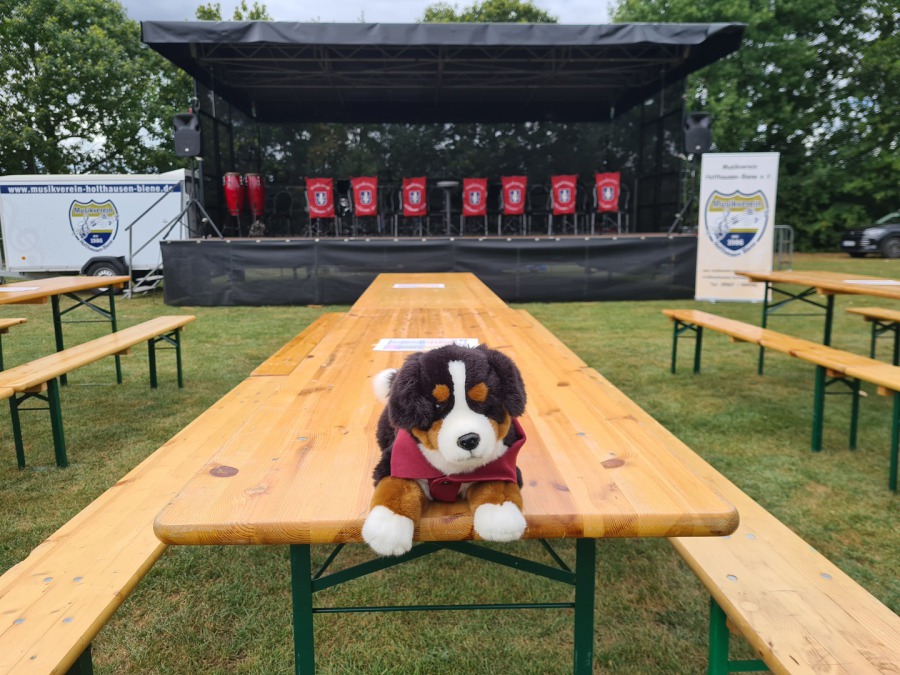 Zu unserem Open-Air-Konzert "Bratwurst, Bier & Blasmusik" heißt Paul die Besucher willkommen
